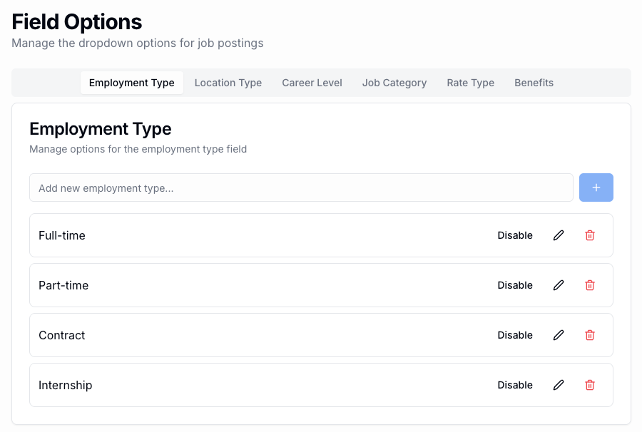 When I first created the ATS, I gave Lovable a list of job post fields, but I didn’t explicitly state which ones should be configurable by an admin. Lovable built the system with the fields, including Employment Type (e.g., full-time, part-time, etc.), Location Type (e.g., in-person, remote, hybrid), etc. but hardcoded the options. The moment I went to post a job and saw the predetermined field choices I knew the system wasn’t flexible enough. I hadn’t designed the system properly and the AI filled in the gaps for me.